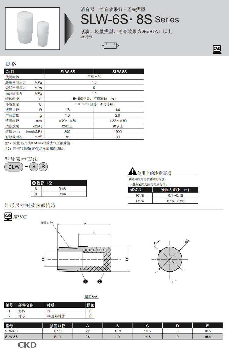 SLW-6S,SLW-8S,CKD消音器