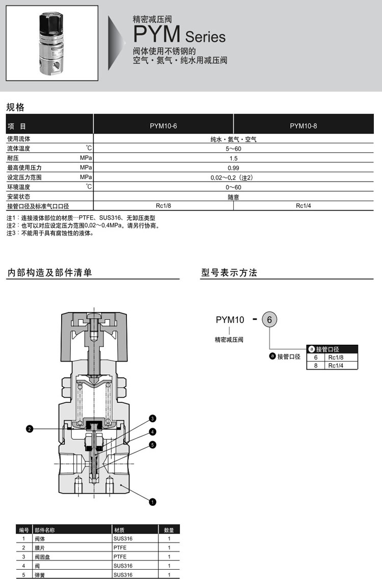 PYM10-6,PYM10-8,CKD精密減壓閥