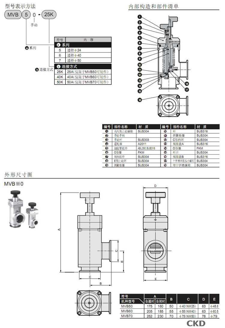 MVB50-25K,MVB60-40K,MVB70-50K,CKD高真空用手動閥