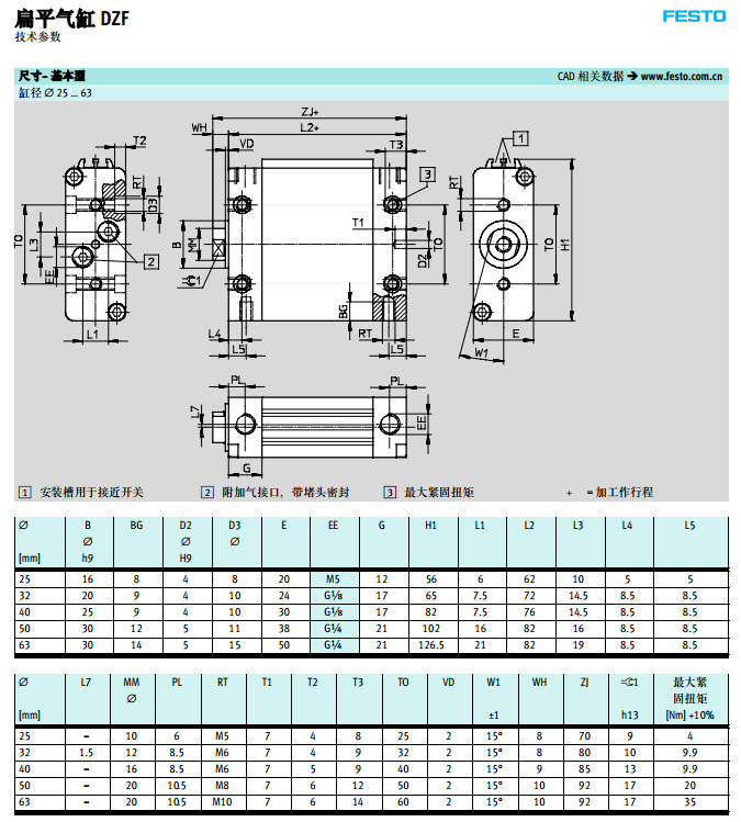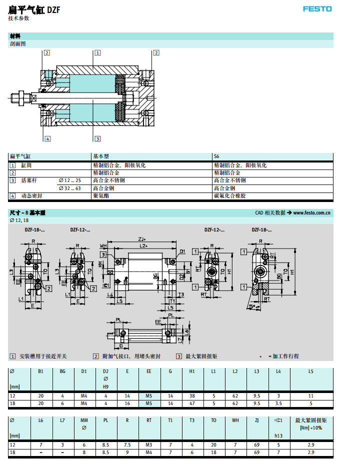 DZF-12,DZF-18,DZF-25,DZF-32,DZF-40,DZF-50,DZF-63,festo扁平氣缸
