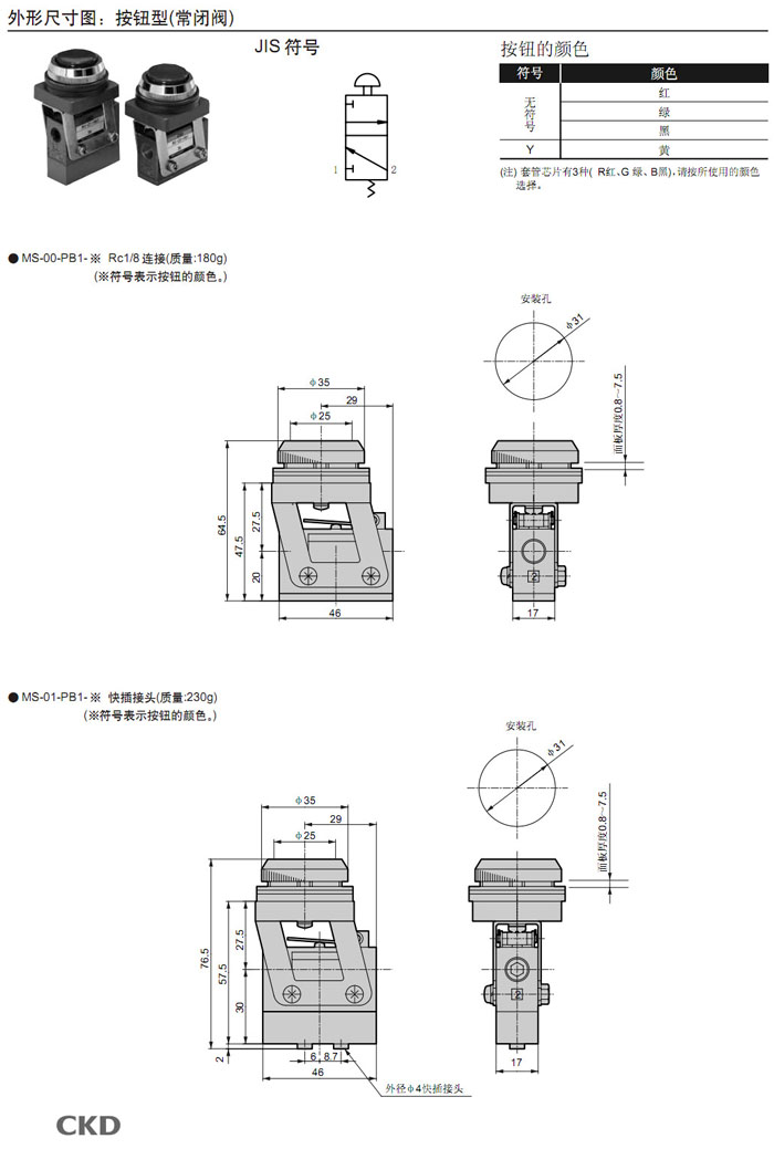 MS-00,MS-01,MS-10,MS-11,MS-40,MS-41,MS-00-PP,MS-01-PP,MS-10-PP,MS-40-SE2,CKD機(jī)械閥