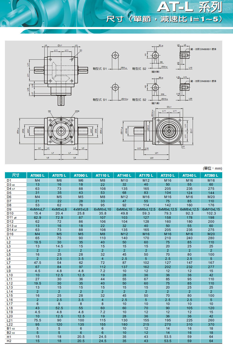 AT065-L,AT075-L,AT090-L,AT110-L,AT140-L,AT170-L,AT210-L,伺服專用減速機