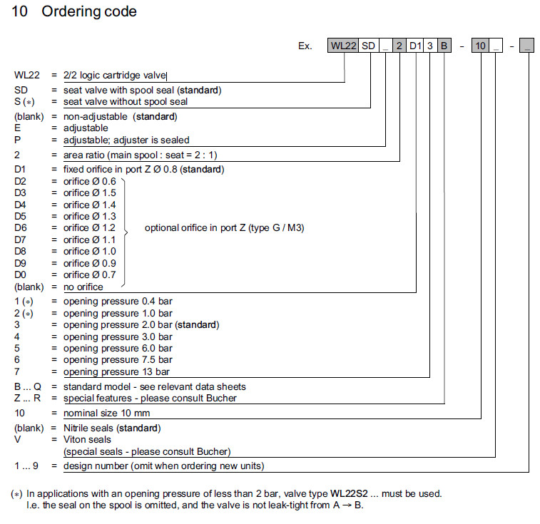 WL22SD2D13B-10-1,WL22SDE2D23B-10-1,WL22SDP2D33B-10-1,WL22SD2D14B-10-1,Bucher邏輯插裝閥