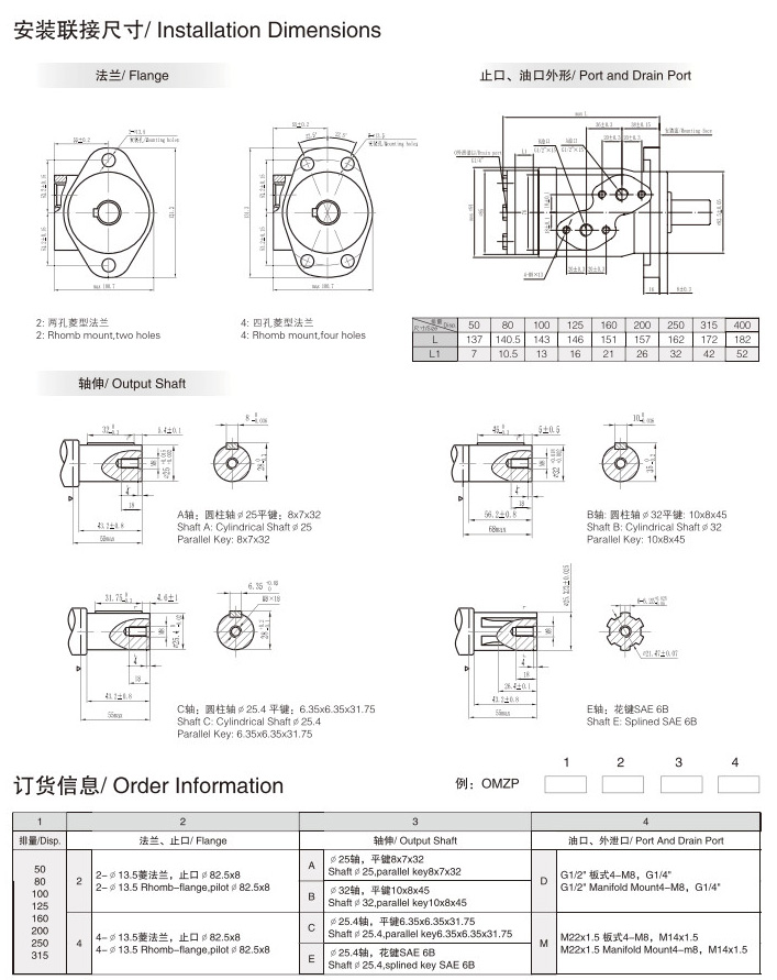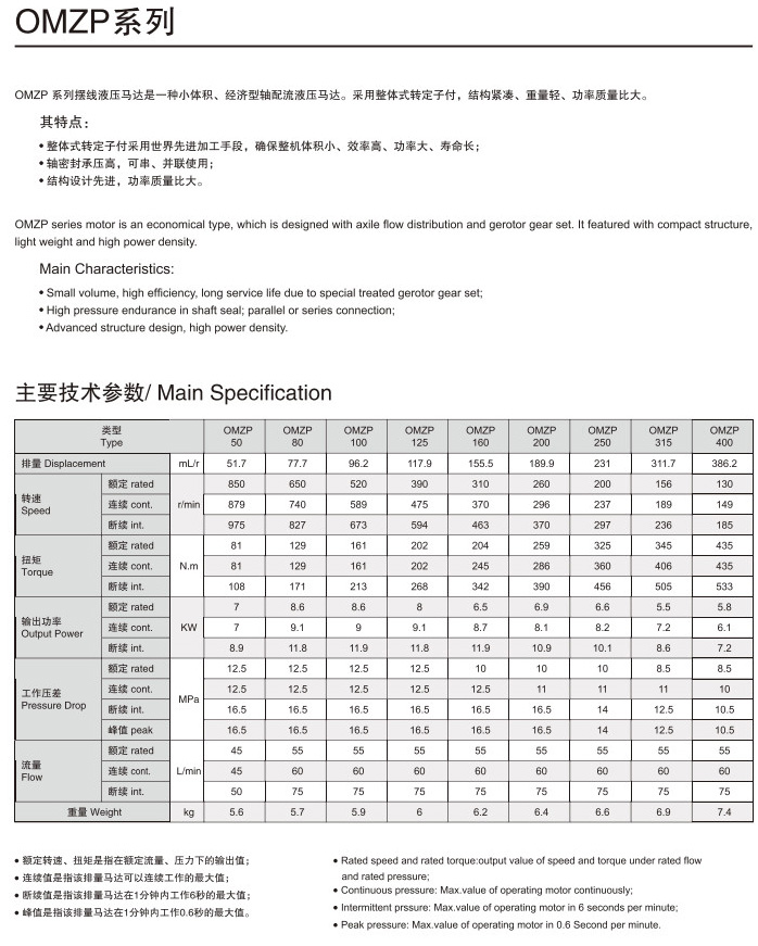 OMZP50,OMZP80,OMZP100,OMZP125,OMZP160,OMZP200,OMZP250,OMZP315,OMZP400,擺線馬達