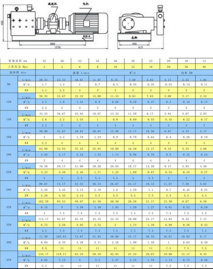 適用于高壓和超高壓清洗泵、石油、化工、化肥流程泵銅液泵、油田、鹽礦注水泵、液態(tài)二氧化碳泵、 五鈉料漿泵、鋼廠除磷泵、除銹泵。組裝型式∶有臥式、固定式、移動(dòng)式。傳動(dòng)型式∶有電動(dòng)機(jī)、柴油機(jī)、齒輪箱、皮帶輪、電磁調(diào)速、變頻調(diào)速。表中技術(shù)參數(shù)作為選型參考,每個(gè)品種的泵都裝有安全調(diào)壓閥,泵的壓力可任意調(diào)節(jié)。你選型時(shí)表中流量不適合,可用電磁調(diào)速,變頻調(diào)速,變換柱塞直徑來調(diào)節(jié)流量,滿足選型需要。泵體材料有合金鋼、馬氏體、奧氏體不銹鋼、316、316L雙相鋼。
