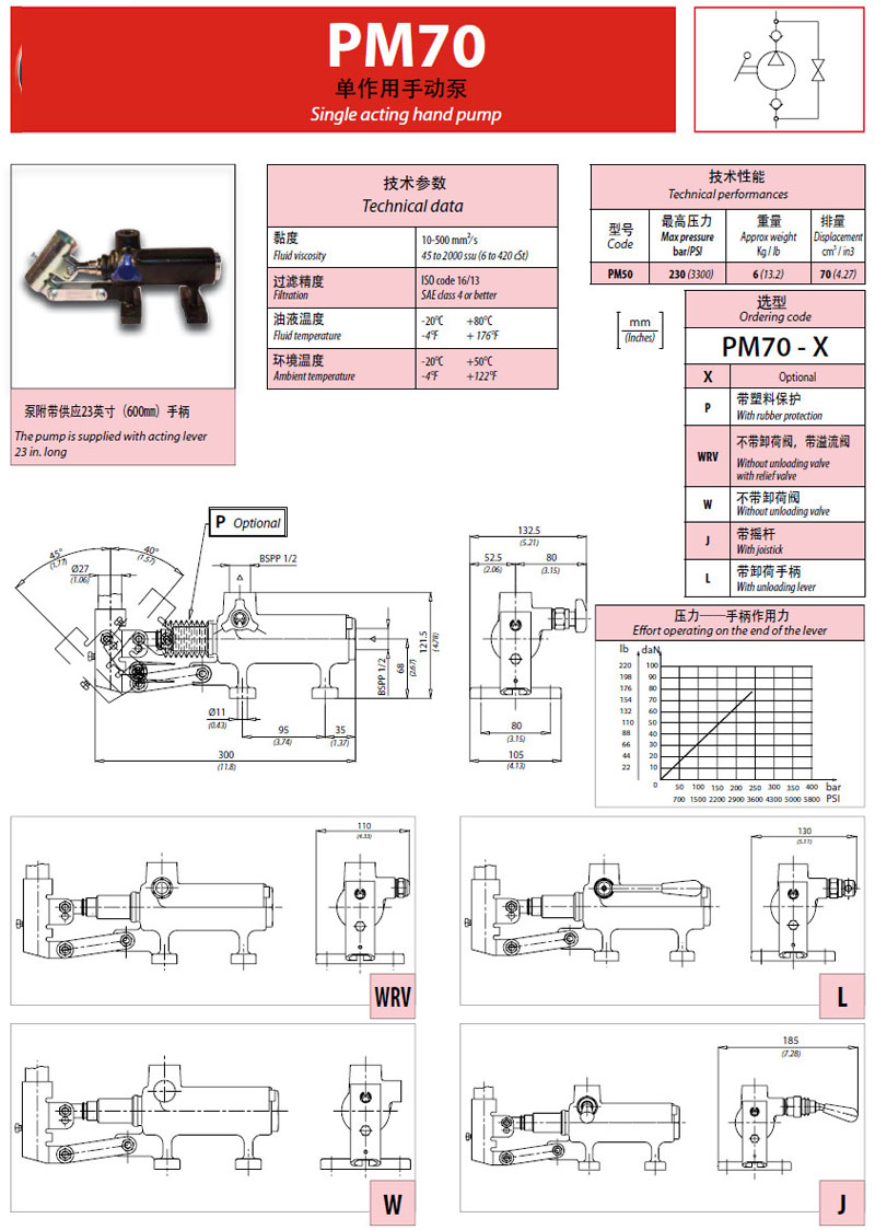 PM70-P,PM70-WRV,PM70-W,PM70-J,PM70-L,單作用手動泵