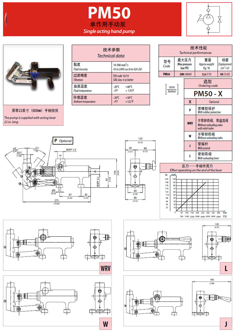 PM50-P,PM50-WRV,PM50-W,PM50-J,PM50-L,單作用手動(dòng)泵