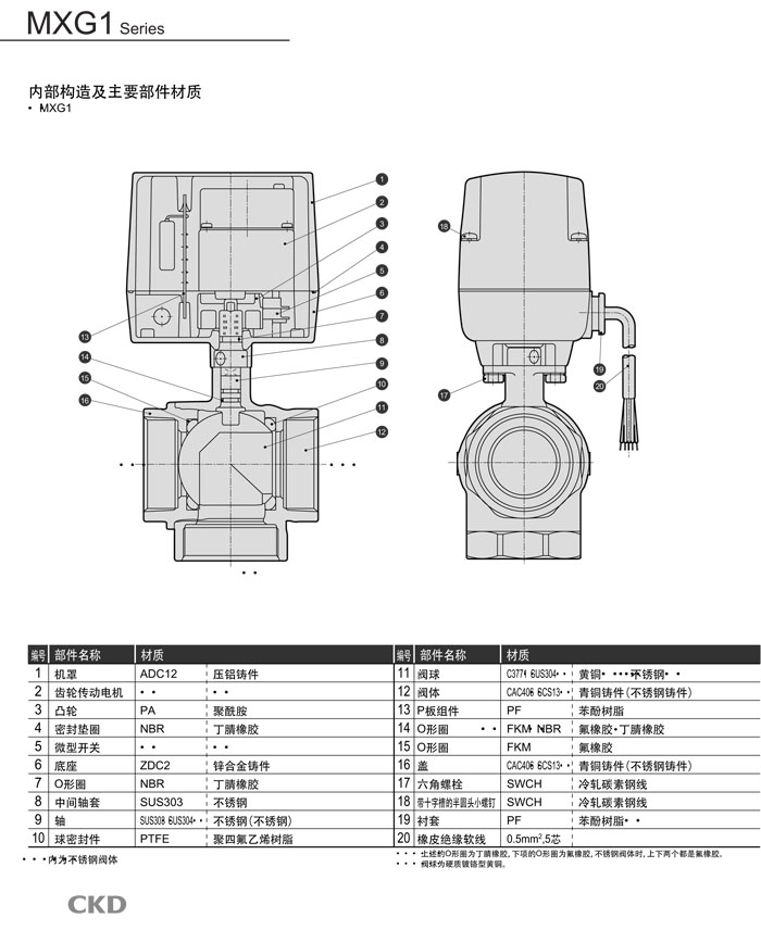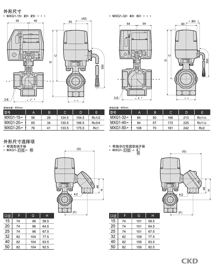 MXG1-15,MXG1-20,MXG1-25,MXG1-32,MXG1-40,MXG1-50,CKD電動式球閥3通閥