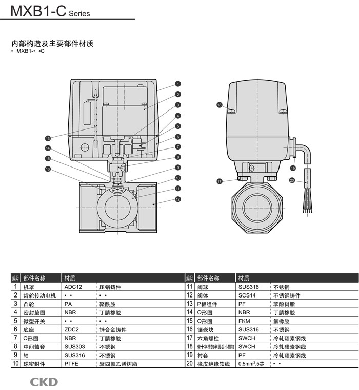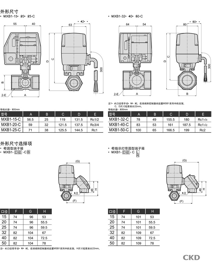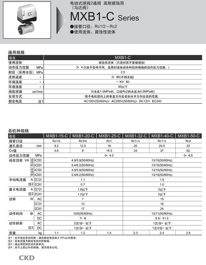 MXB1-15-C,MXB1-20-C,MXB1-25-C,MXB1-32-C,MXB1-40-C,MXB1-50-C,CKD電動(dòng)式球閥2通閥