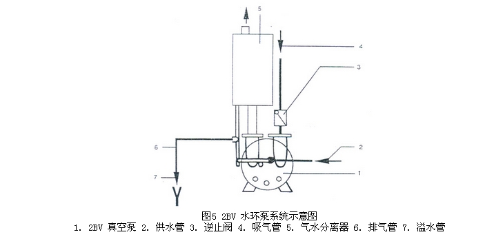 當(dāng)2BV水環(huán)式真空泵排出的氣體不再利用時(shí),在2BV水環(huán)式真空泵排氣口上接有氣水分離器,廢氣和所帶的部分水排入氣水分離器后,氣水分離,氣體由排氣管排出,留下的水經(jīng)回水管供至泵內(nèi)繼續(xù)使用。隨著工作時(shí)間的延長,工作水溫度會不斷地升高,這時(shí)需從供水管供給冷水,以降低工作水的溫度,保證泵能達(dá)到所要求的技術(shù)要求和性能指標(biāo)。
