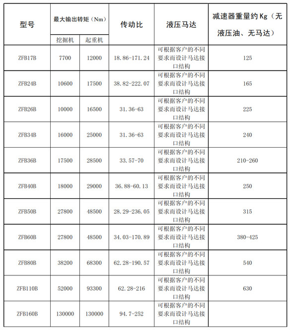 ZFB17B,ZFB24B,ZFB26B,ZFB34B,ZFB36B,ZFB40B,ZFB50B,ZFB60B,ZFB80B,ZFB110B,ZFB160B,回轉(zhuǎn)減速機
