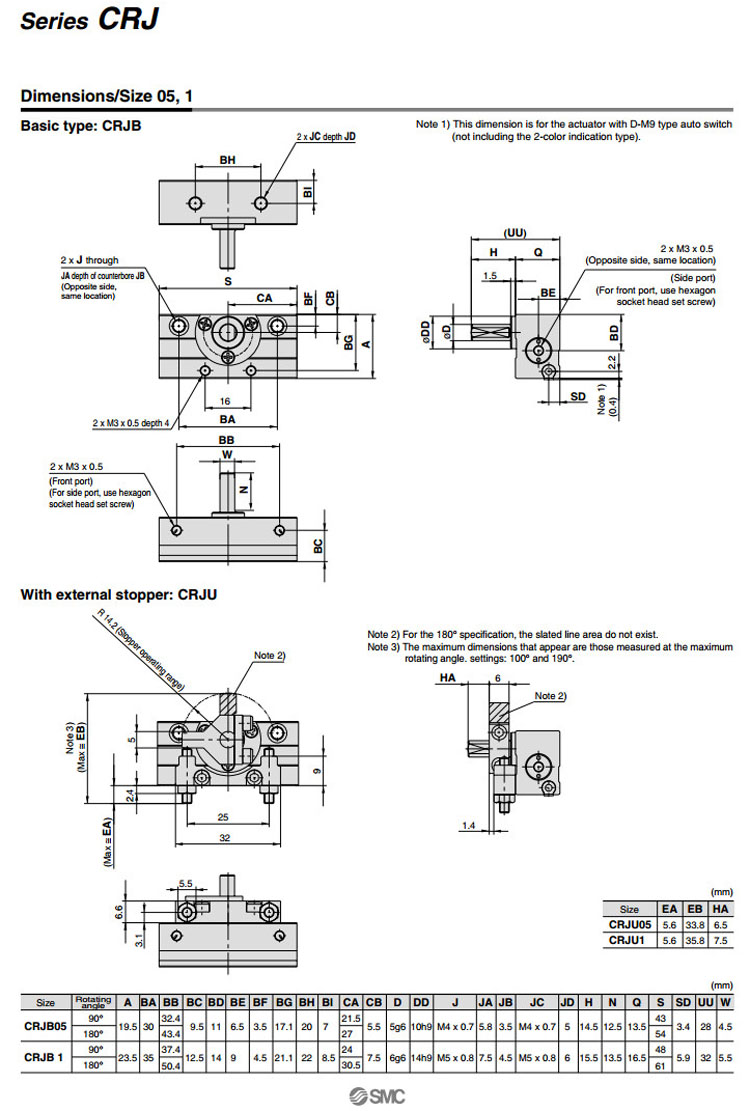 CRJB05-90,CRJB1-90,CRJU05-90,CRJU1-90,CRJB05-100,CRJB1-100,CRJU05-180,SMC微型擺動(dòng)氣缸