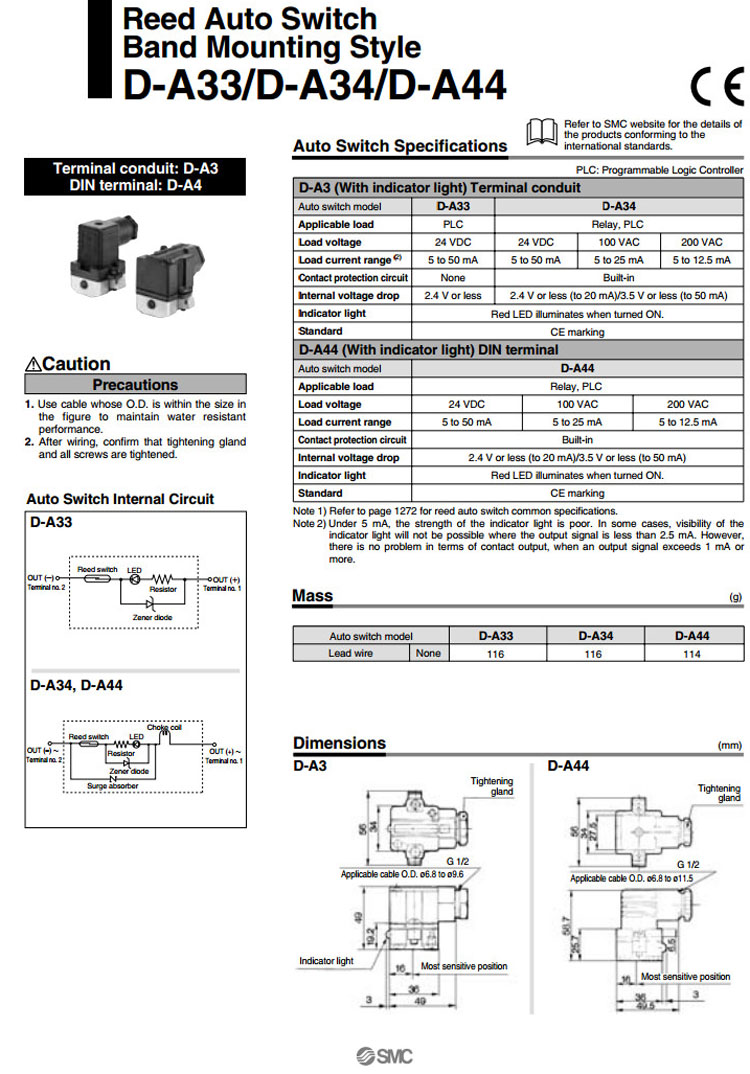 D-A33,D-A34,SMC自動(dòng)開(kāi)關(guān)