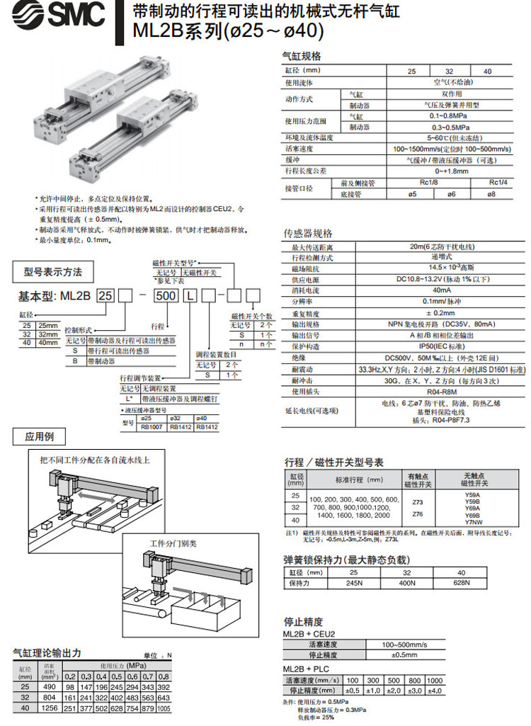 ML2B25-100,ML2B25S-100,ML2B25B-100,ML2B25-200,ML2B25S-200,ML2B25B-200,SMC高精度無桿氣缸