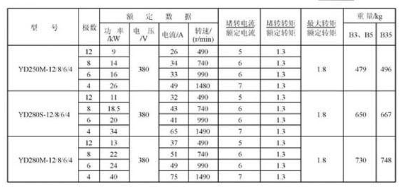 YD225S-4/2,YD225M-4/2,YD250M-4/2,YD280S-4/2,YD280M-4/2,