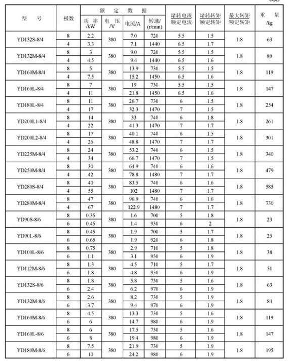 YD132S-4/2,YD132M-4/2,YD160M-4/2,YD160L-4/2,YD180M-4/2,YD180L-4/2,YD200L-4/2,