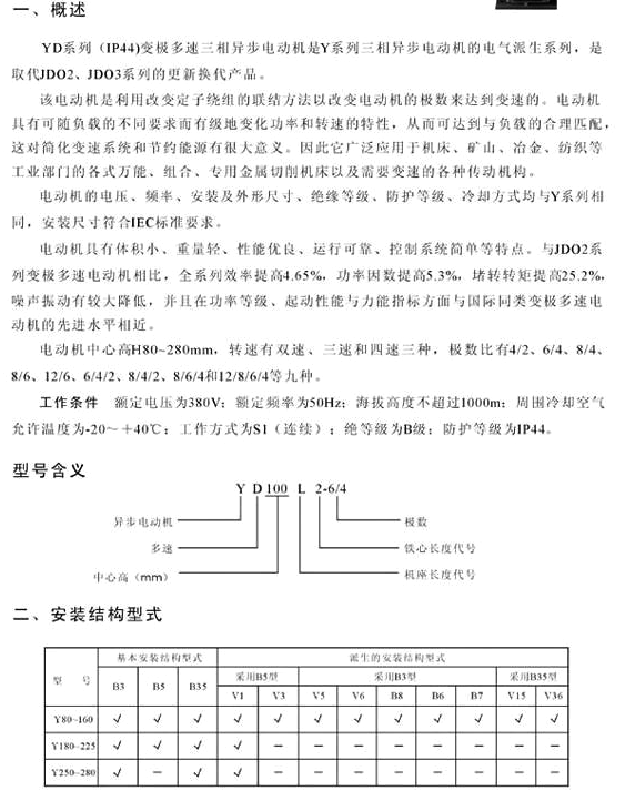 YD112M-8/6/4,YD132S-8/6/4,YD132M1-8/6/4,YD132M2-8/6/4,YD160M-8/6/4,YD160M-6/4/2,