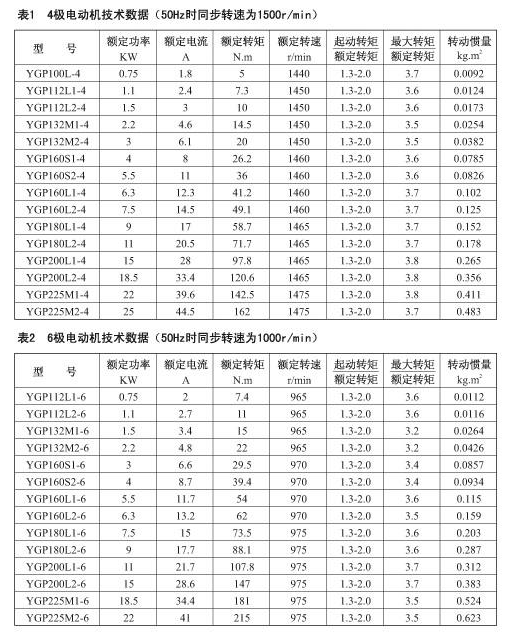 YGP160L1-4,YGP160L2-4,YGP180L1-4,YGP180L2-4,YGP200L1-4,YGP200L2-4,YGP225M1-4,YGP225M2-4,