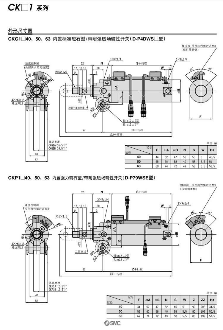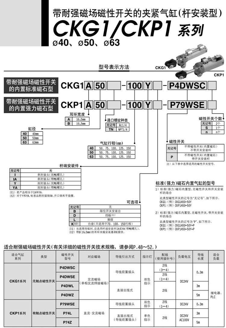CKP1A40-50,CKP1A50-50,CKP1A63-50,CKP1B40-50,CKP1B50-50,CKP1B63-50,SMC夾緊氣缸