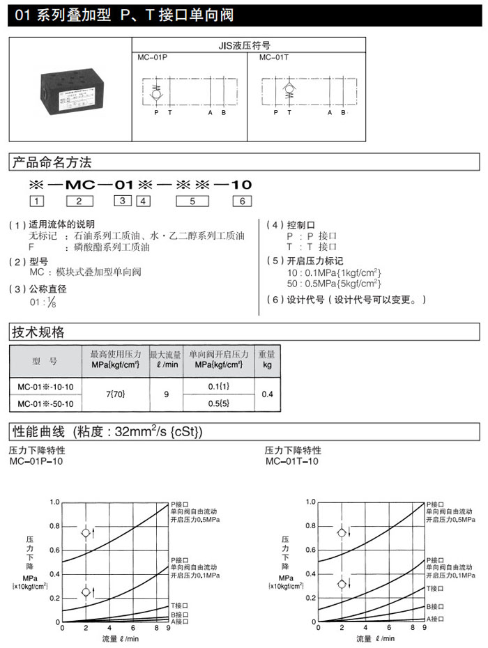 MC-01P-10-10,MC-01P-50-10,MC-01T-10-10,MC-01T-50-10,DAIKIN疊加型接口單向閥