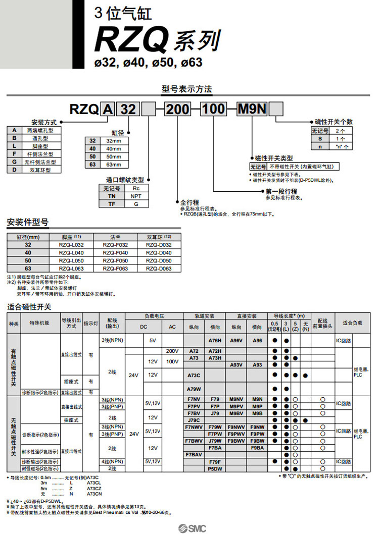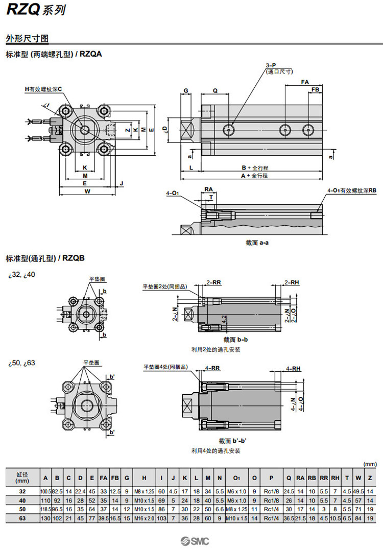 RZQA32-25,RZQB32-25,RZQL32-25,RZQF32-25,RZQG32-25,RZQD32-25,SMC3位氣缸