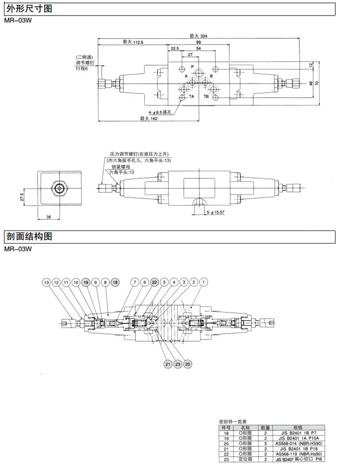 MR-03W-1-45,MR-03W-3-45,DAIKIN疊加型溢流閥