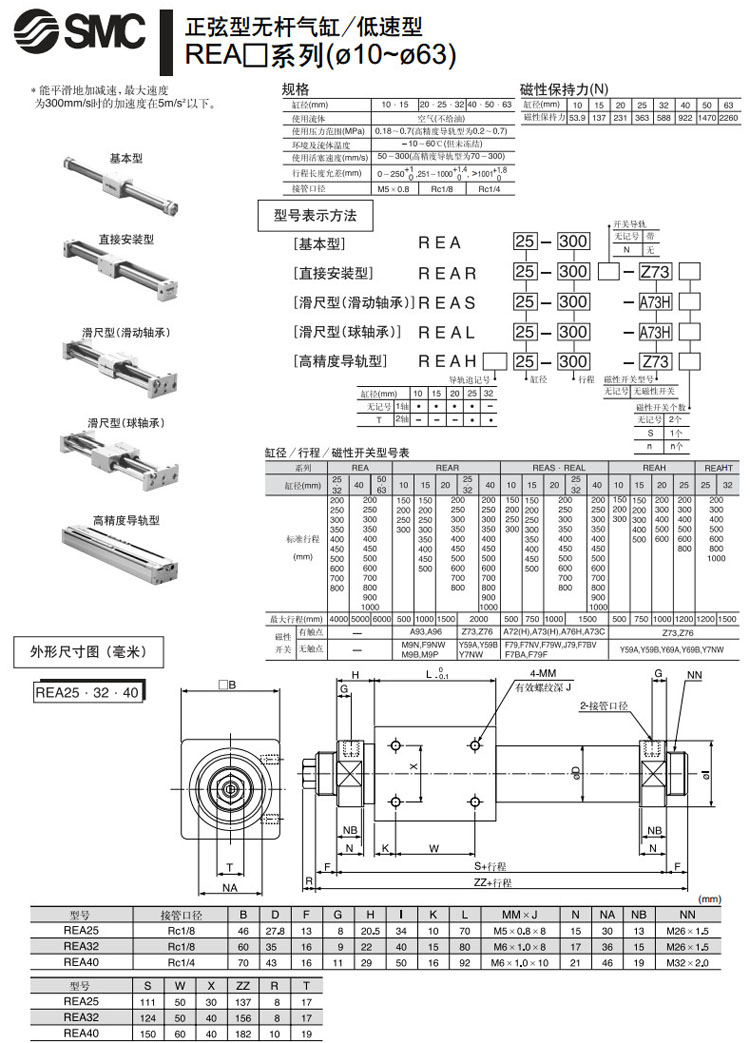 REAH10-150,REAH15-150,REAH20-200,REAH25-200,REAHT25-200,REAHT32-200,REAH10-200,SMC正弦無桿氣缸
