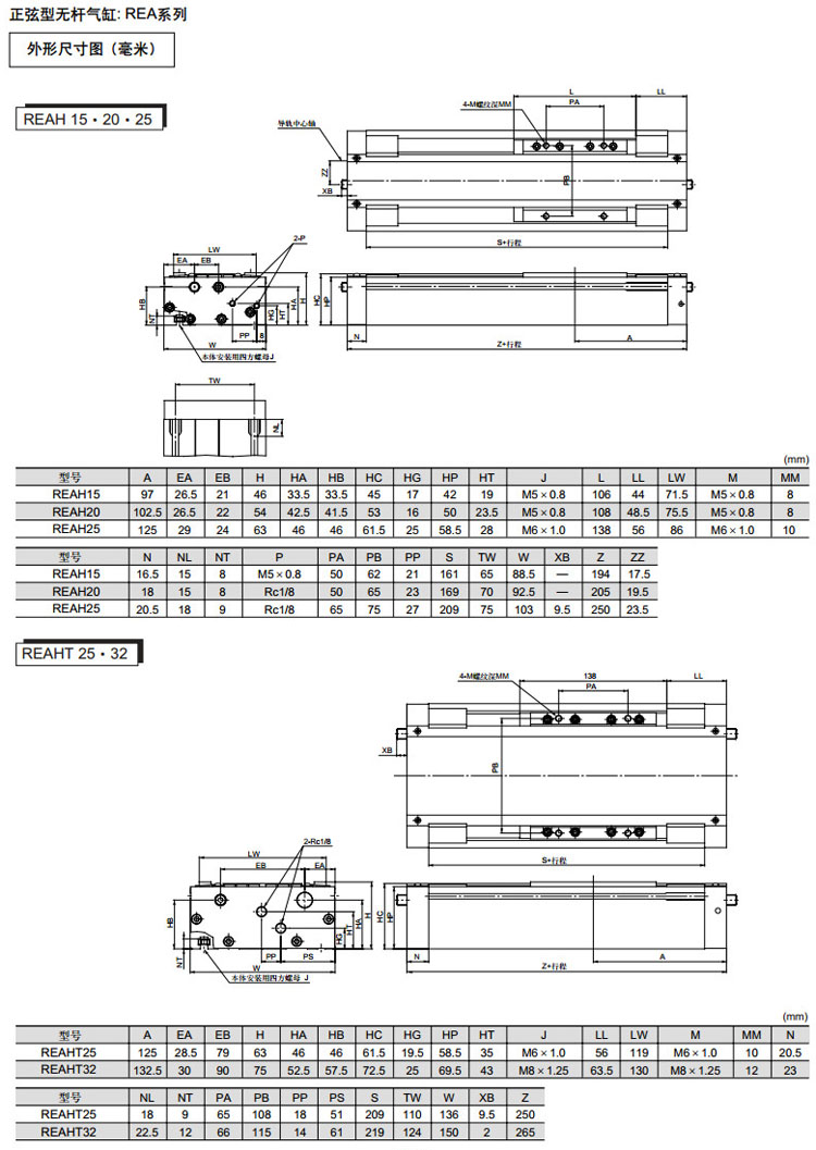 REAL10-150,REAL15-150,REAL20-200,REAL25-200,REAL32-200,REAL40-200,REAL10-200,SMC正弦無(wú)桿氣缸