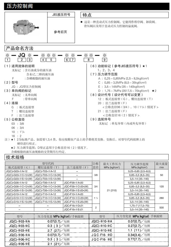 JQC-G03,JQC-G06,JQC-G10,JQC-T03,JQC-T06,JQC-T10,JQC-G03-1A-12,JQC-T03-1A-12,DAIKIN壓力控制閥