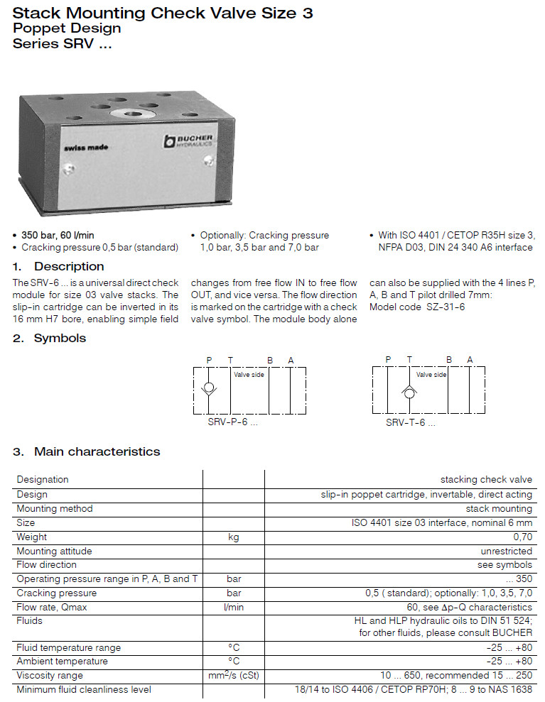 SRV-P-6-05,SRV-P-6-10,SRV-P-6-35,SRV-P-6-70,Bucher疊加閥