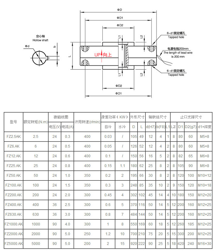 FZ-AK型( 空心軸聯(lián)結、止口支撐、立式)磁粉制動器