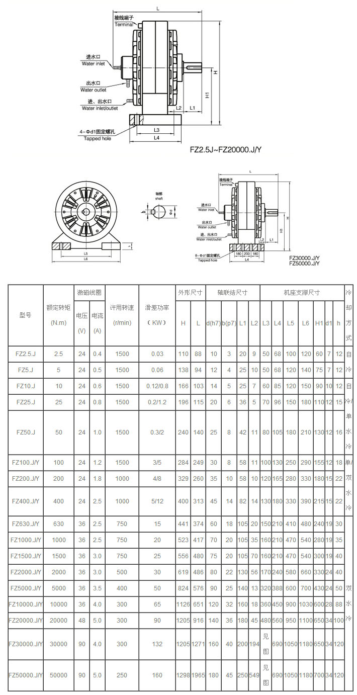 FZ2.5.J,FZ5.J,FZ10.J,FZ25.J,FZ50.J,FZ100.J/Y,FZ200.J/Y,FZ400.J/Y,FZ630.J/Y,FZ1000.J/Y,磁粉制動(dòng)器