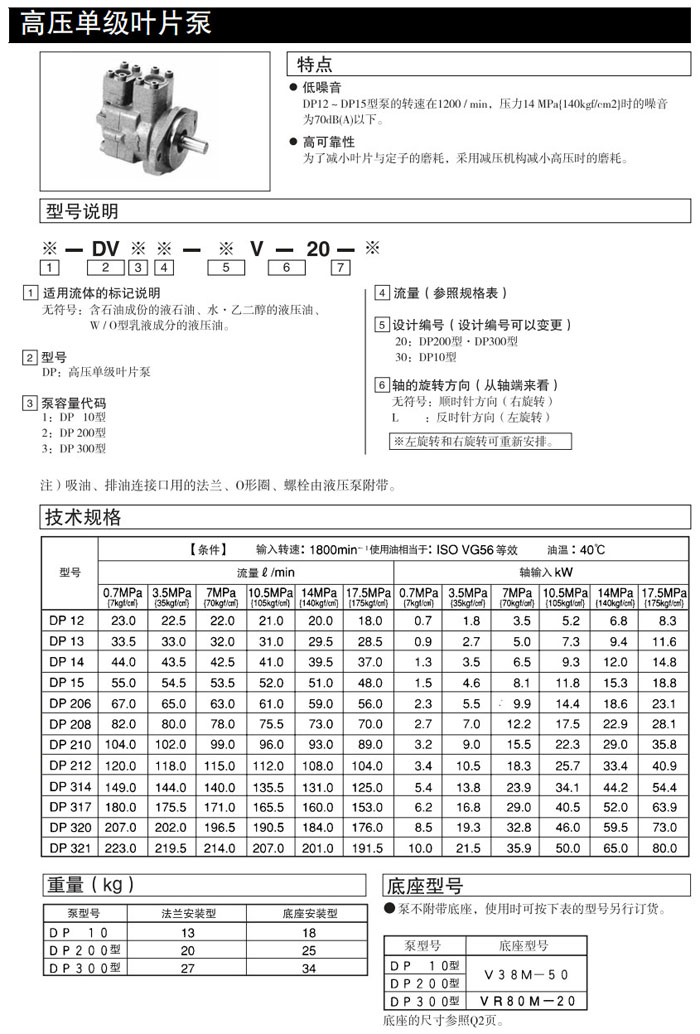 DP12,DP12,DP14,DP15,DP206,DP208,DP210,DP212,DP314,DP317,DP320,DP321,DP12-30V-20,DAIKIN高壓單級葉片泵