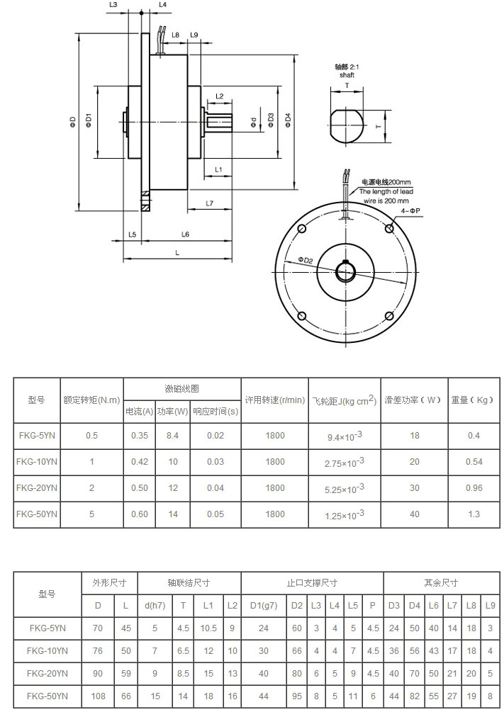 FKG-5YN,FKG-10YN,FKG-20YN,FKG-50YN,磁粉制動器