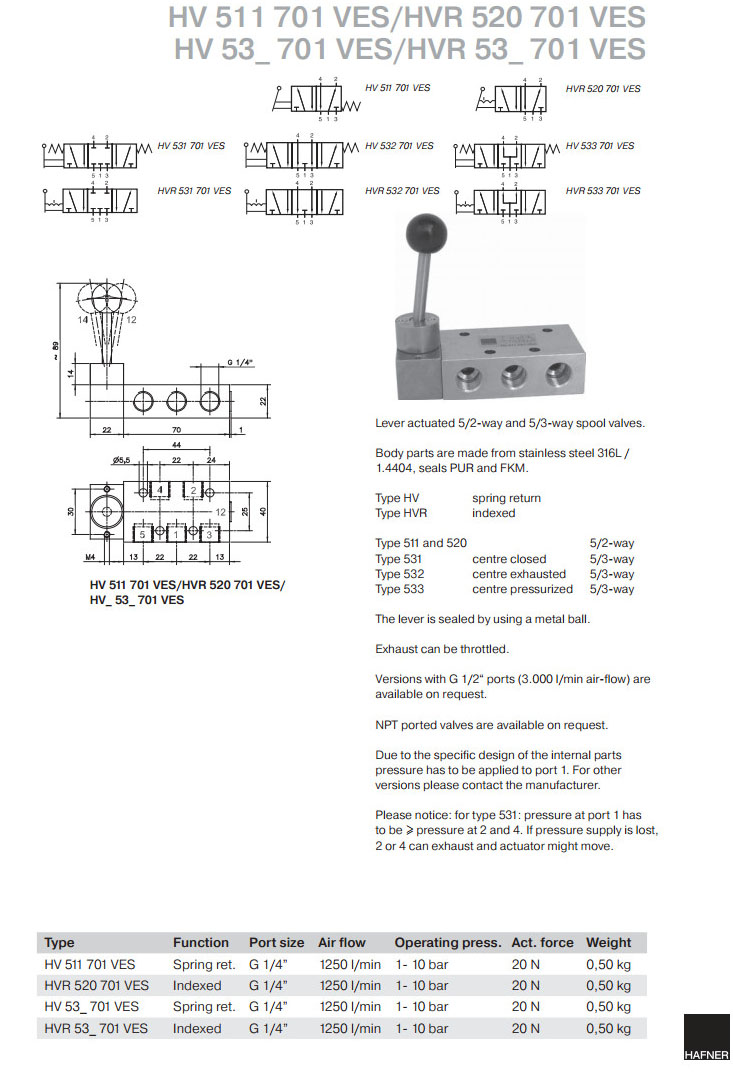 HV511701VES,HVR520701VES,HV531701VES,HVR531701VES,HV532701VES,HVR532701VES,HV533701VES,Hafner滑閥