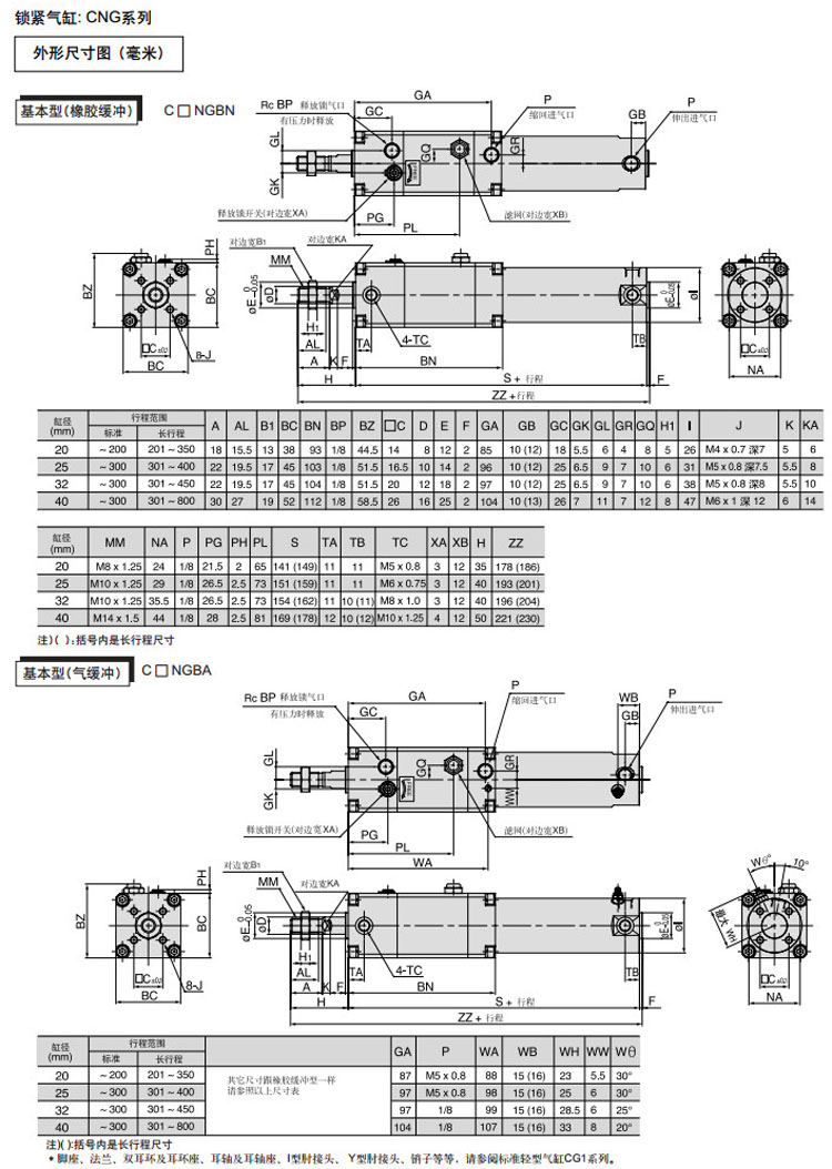 CNGBN20,CNGLN20,CNGFN20,CNGGN20,CNGUN20,CNGTN20,CNGDN20,CNGBN20-25,CNGBA20-25,SMC標(biāo)準(zhǔn)型鎖緊氣缸