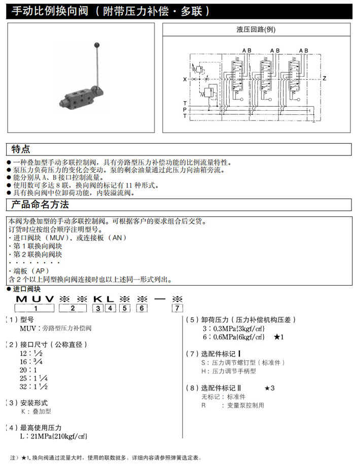 MUV12KL,MUV16KL,MUV20KL,MUV25KL,MUV32KL,MUV12KL3S,MUV20KL6S,DAIKIN手動比例換向閥