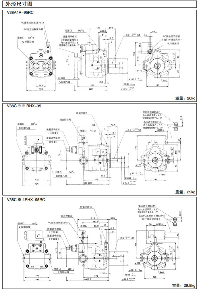 JS,V38A1RX-95,V38C11RHX-95,V38D11RAX-95,V38SA1ARX-95,DAIKIN柱塞泵