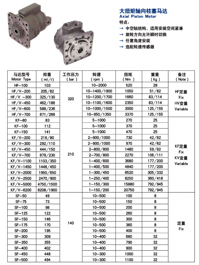 HF-100,HF/V-200,KF-100,KF-150,KF/V-200,KF/V-300,SF-75,SF-100,大扭矩軸向柱塞馬達(dá)