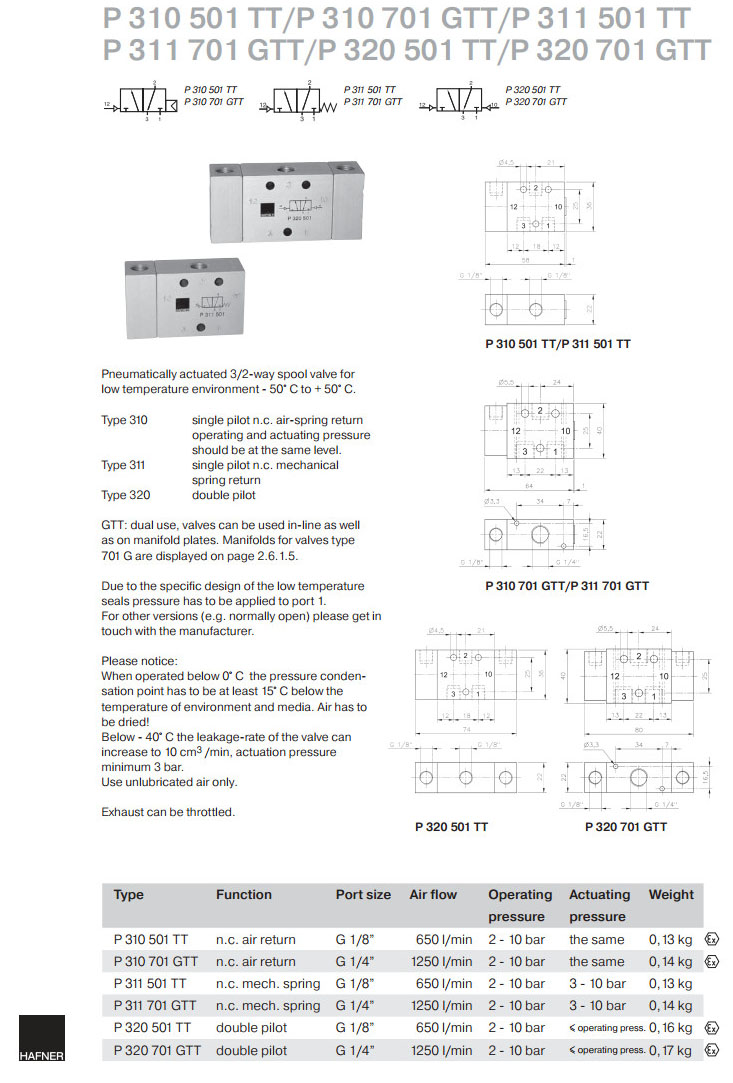P310501TT,P310701GTT,P311501TT,P311701GTT,P320501TT,P320701GTT,Hafner滑閥