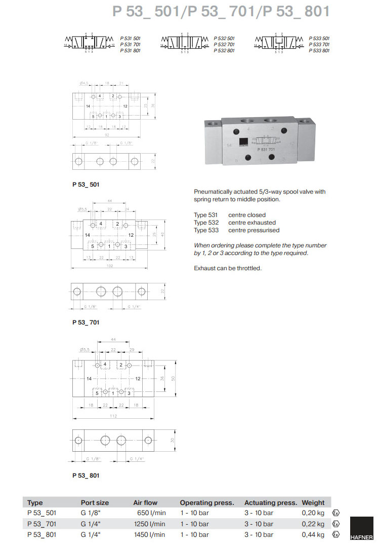 P531501,P531701,P531801,P532501,P532701,P532801,P533501,P533701,P533801,Hafner滑閥