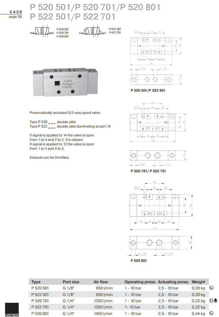 P520501,P522501,P520701,P522701,P520801,Hafner滑閥