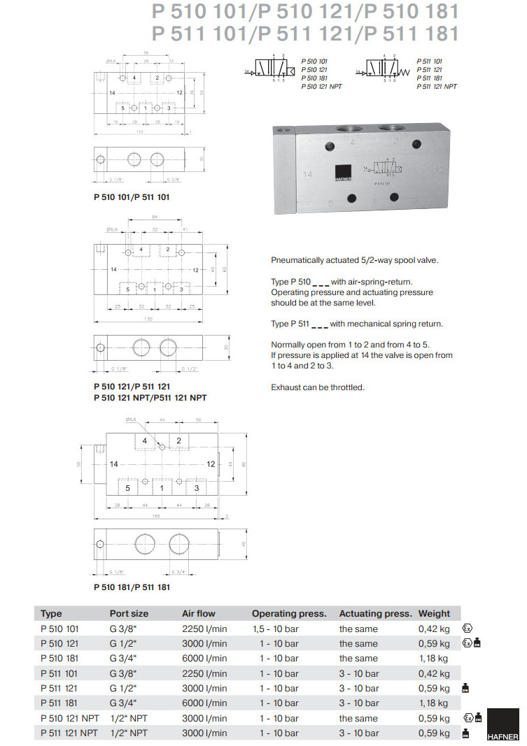P510101,P510121,P510181,P511101,P511121,P511181,P510121NPT,P511121NPT,Hafner滑閥