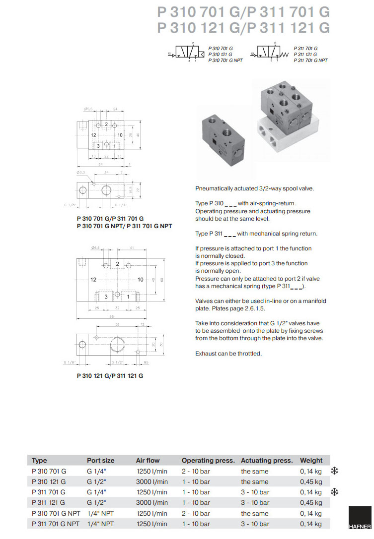 P310701G,P310121G,P311701G,P311701G,P311121G,P310701GNPT,P311701GNPT,Hafner滑閥