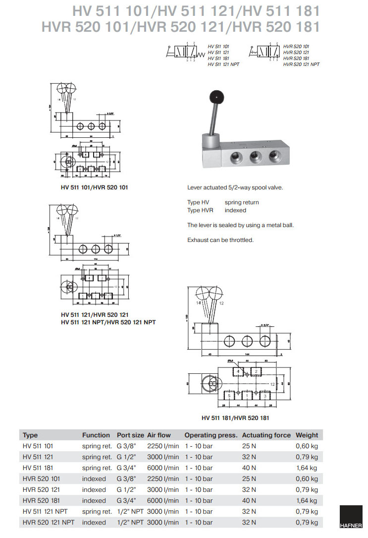 HV511101,HV511121,HV511181,HVR520101,HVR520121,HVR520181,HV511121NPT,HVR520121NPT,Hafner滑閥