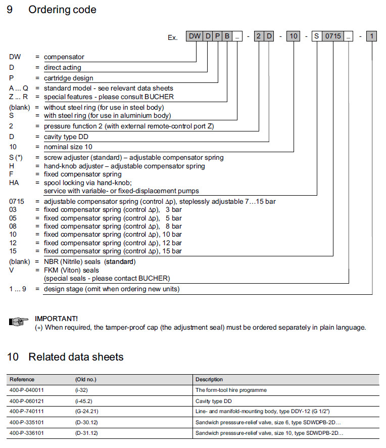 DWDPB-2D-10-S0715-1,DWDPB-2D-10-S03-1,DWDPBS-2D-10-S05-1,DWDPBS-2D-10-S08-1,Bucher壓力補償器