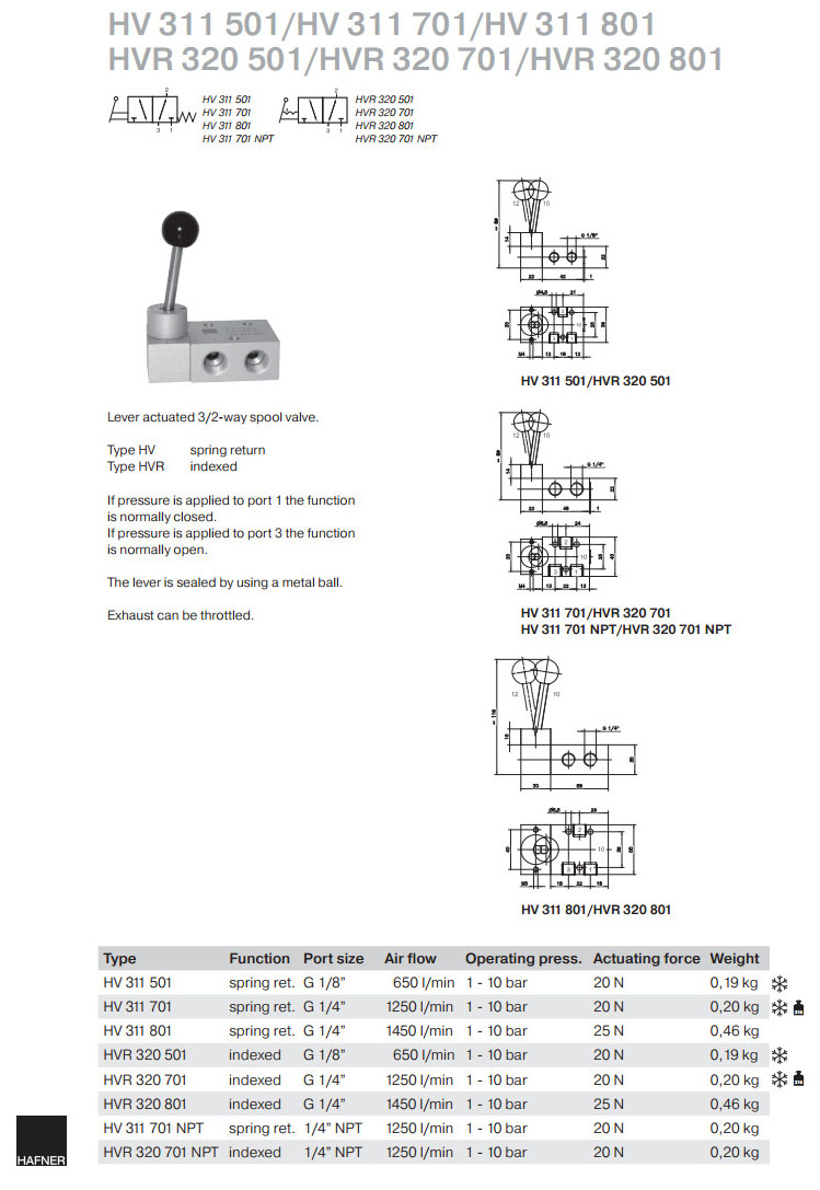 HV311501,HV311701,HV311801,HVR320501,HVR320701,HVR320801,HV311701NPT,HVR320701NPT,Hafner滑閥