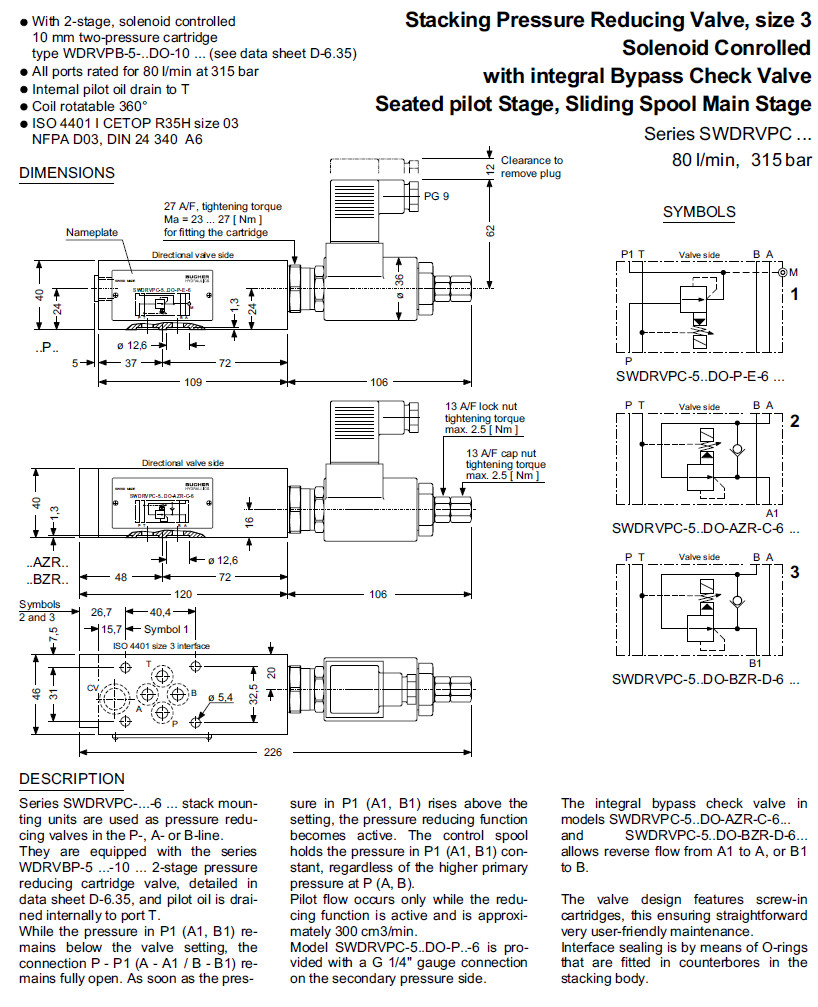 SWDRVPC-5NDO-PR-E-6,SWDRVPC-5MDO-AZR-C-6,SWDRVPC-5LDO-BZR-D-6,Bucher減壓閥