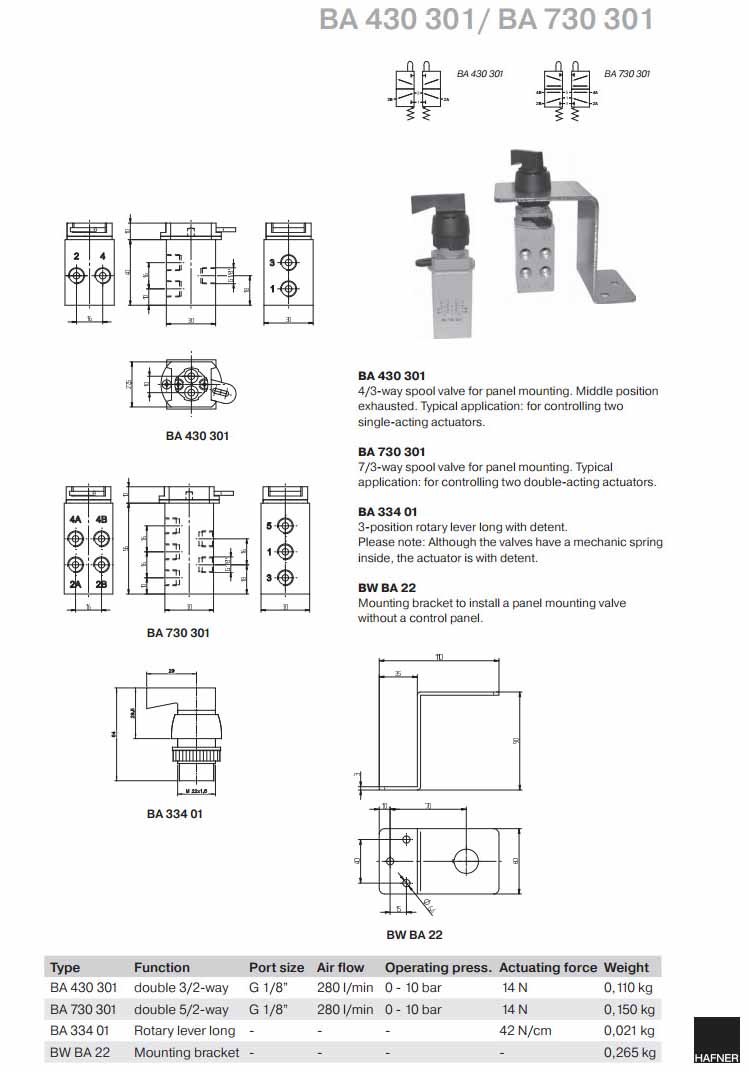 BA430301,BA730301,BA33401,BWBA22,Hafner滑閥