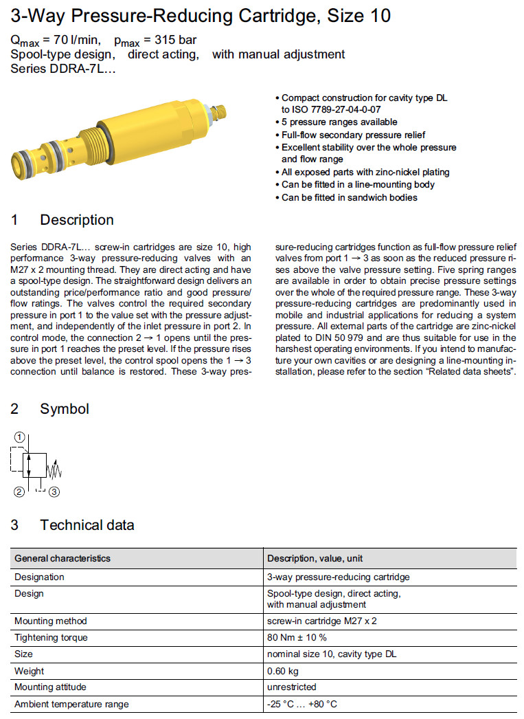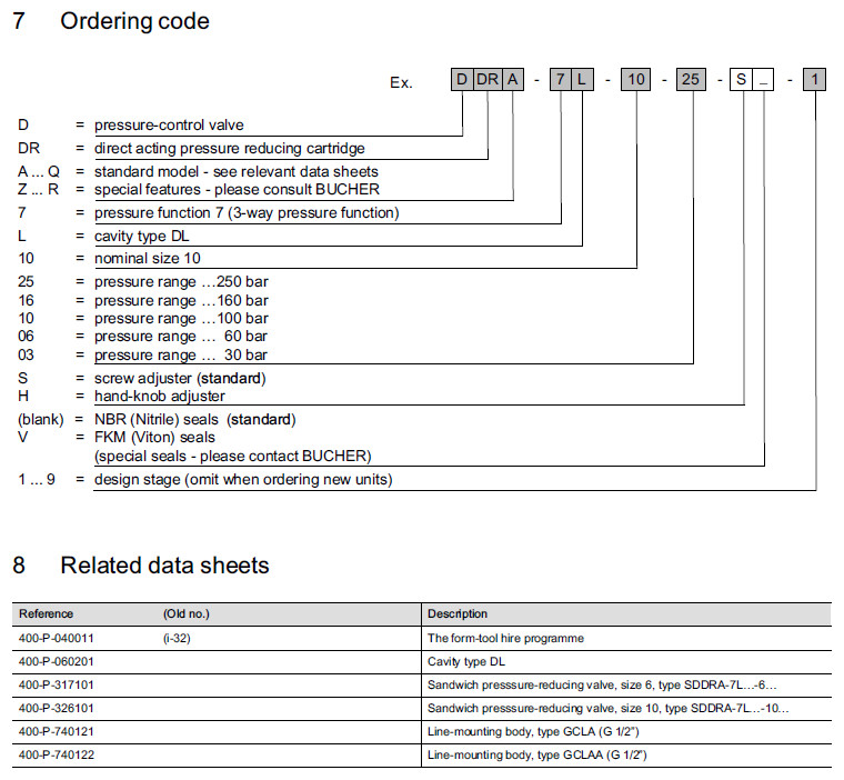 DDRA-7L-10-25,DDRA-7L-10-16,DDRA-7L-10-10,DDRA-7L-10-06,DDRA-7L-10-03,Bucher壓力控制閥